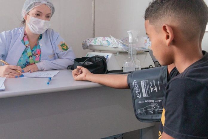 As crianças também são atendidas na frente de Saúde Infantil, com vacinação, atendimentos pediátrico e psicológico, enfermagem, oftalmologia, coleta de exames, puericultura e encaminhamento às unidades de saúde para a realização do teste do pezinho e da orelhinha.