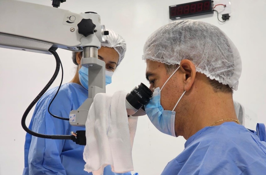 Desde a triagem no município até o momento da cirurgia, os pacientes contam com o suporte completo dos profissionais do Olhar da Gente e do Hospital da Cidade, realizando exames pré-operatórios, pós-operatórios, entrega de óculos escuros e medicamentos, garantindo o cuidado integral com o paciente.