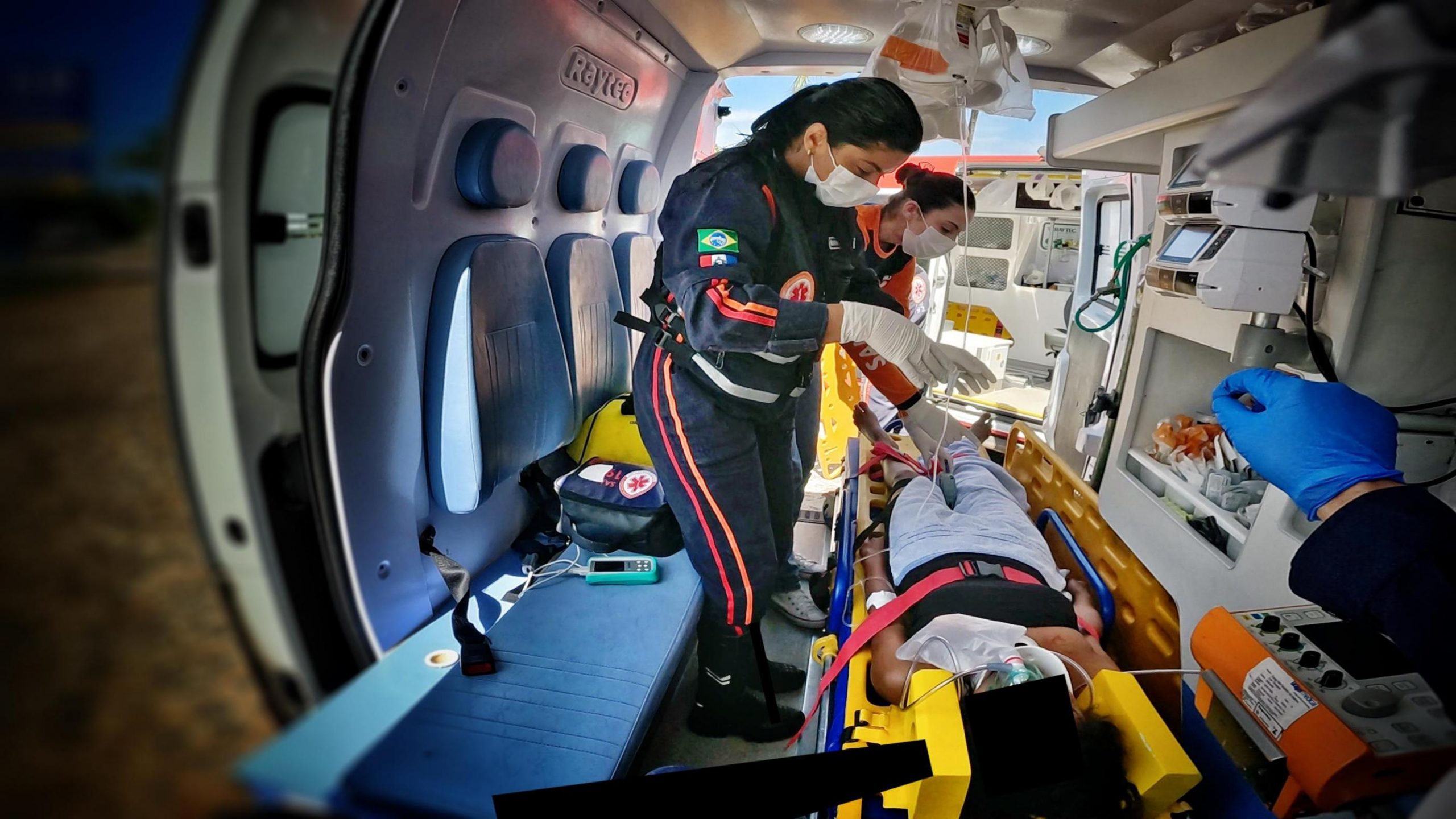 A jovem – que era passageira da moto e não usava capacete – foi inicialmente atendida por uma equipe da Unidade de Suporte Básico (USB), mas, diante da gravidade do quadro clínico, com comprometimento respiratório e hemorragia, foi acionada imediatamente uma Unidade de Suporte Avançado (USA-UTI Móvel) para interceptação no percurso.